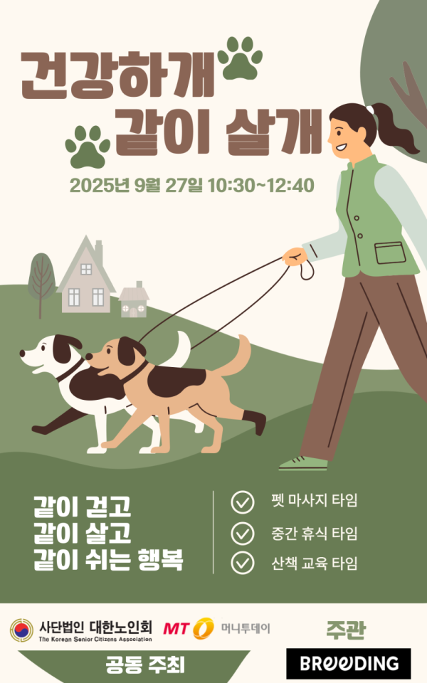 대한노인회와 머니투데이가 함께 주최하는 더 라이프 스타일 박람회에서 강아지를 위한 교육 프로그램이 무료로 진행될 예정입니다.