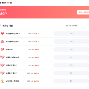 일일 미션 달성하고 펫코인 받기