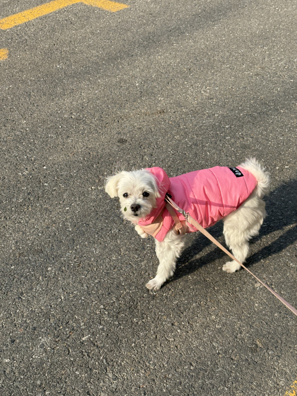 산책하다 볼에 나뭇잎 붙은 귀욤 댕댕이
