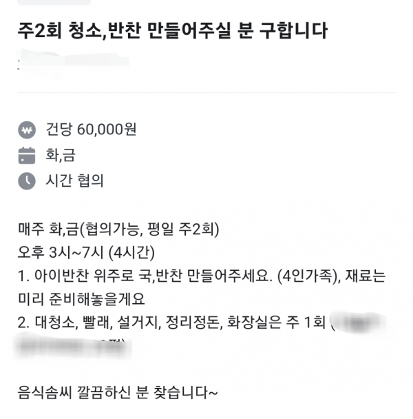 가사도우미 시급 15,000원 당근 근황
