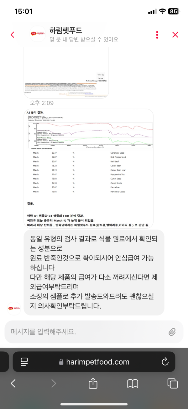 뭐 샘플 보내주냐 그러는데 저걸 눈으로 직접 봤는데 어케 믿나요 걍 사료 바꾸렵니다.